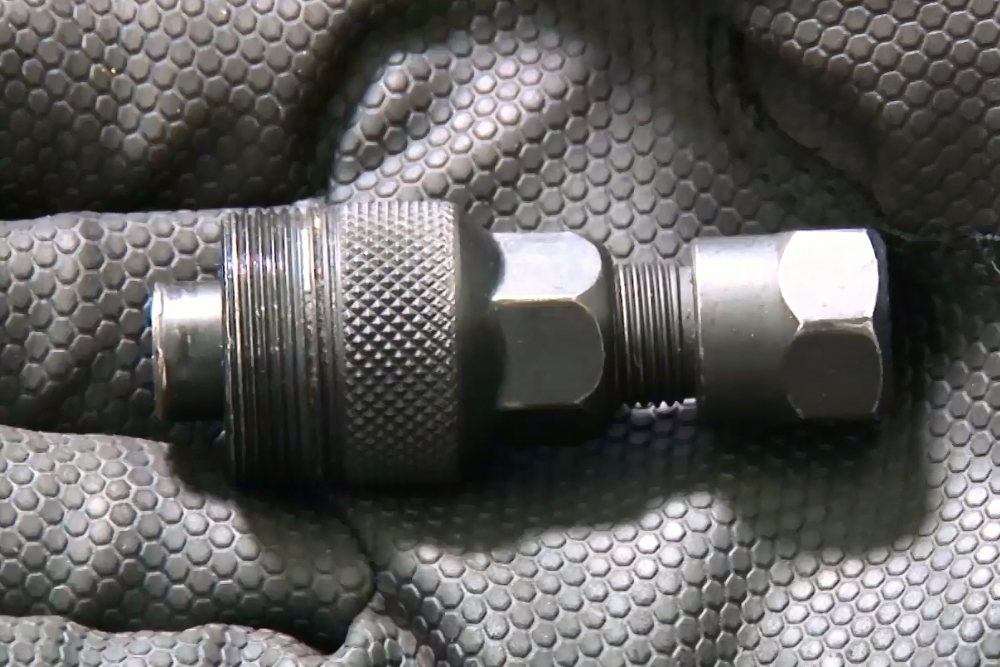 クランクリムーバーをクランク軸穴に差し込み、クランクアームを抜きます。BB規格が、ISISやオクタリンクの場合は、オクタリンク対応のクランクリムーバーを使用して下さい。