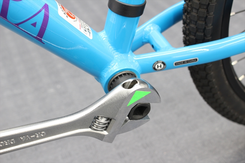 必ず手で回せなくなったところで、工具を使用します。右に回すとクランクが外れます。